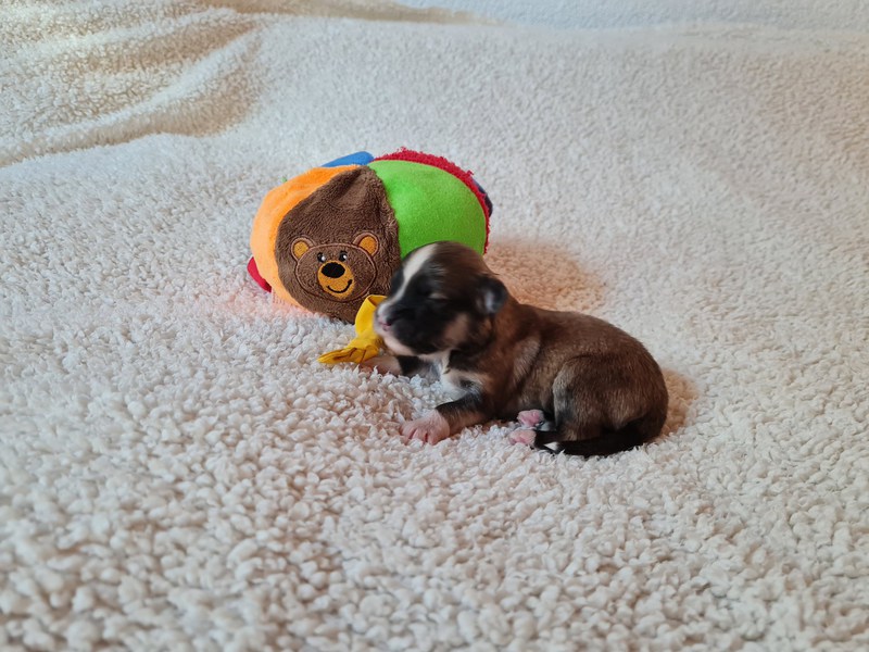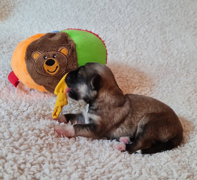 Die kleine Fellnase spielt gerne und hat einen gesunden Hunger.