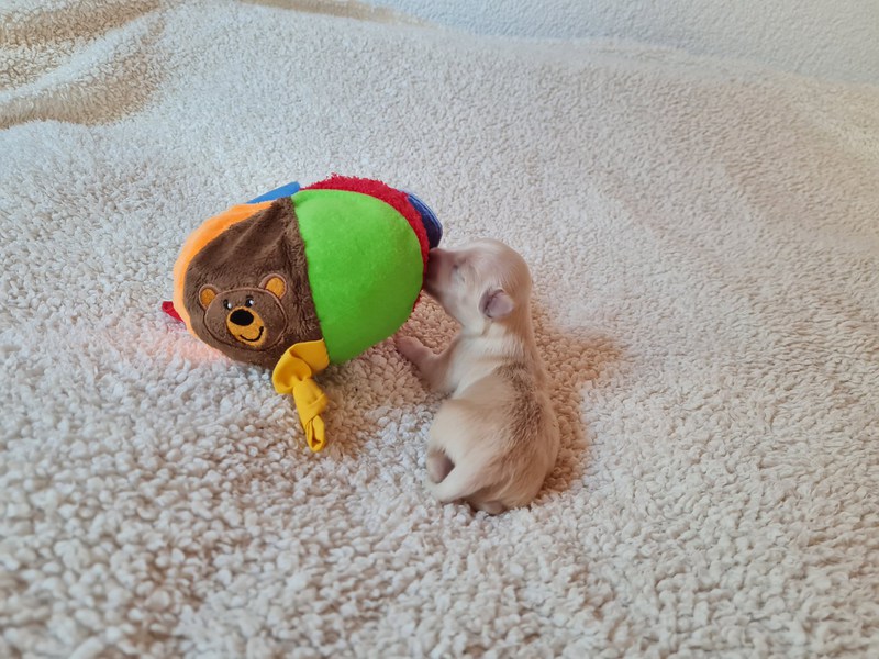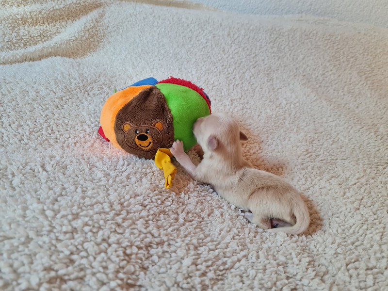 Die kleine Fellnase hat sich super entwickelt und er steht seinen Geschwistern in nichts nach.