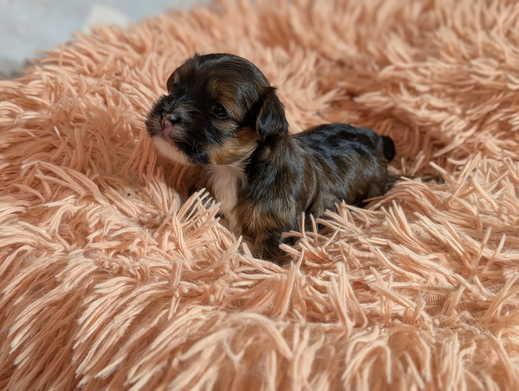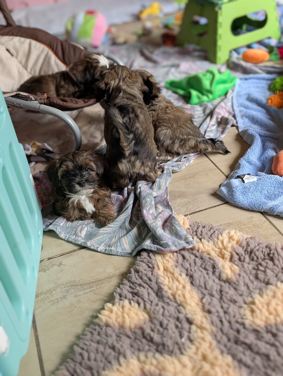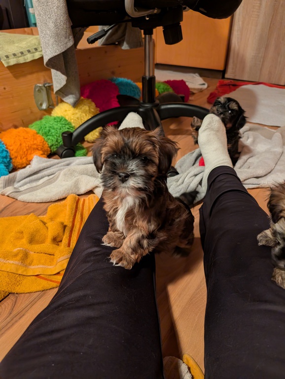Uxana die zarteste im Welpenrudel hat letzte Woche auch das Kilo beim Gewicht geknackt und behauptet sich beim Raufen sehr gut.